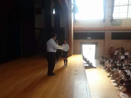 まずは、表彰式が行われました。テコンドー大会やソフトボール大会で素晴らしい成績を収めました。