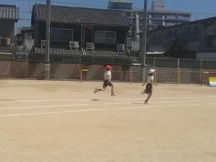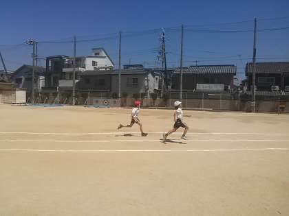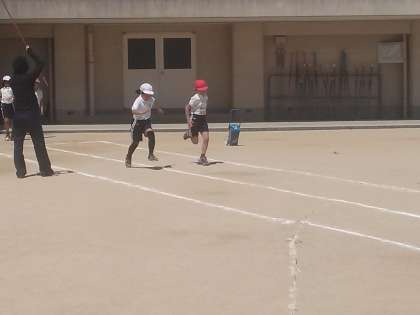 スポーツテストの季節です。4年生が50m走のタイムを計っていました。去年よりも記録は伸びたかな?