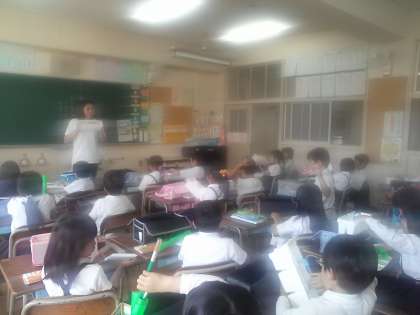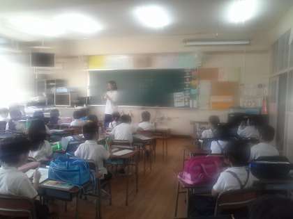 2年生から図画工作の時間に絵の具を使います。今日ははじめて絵の具セットをあけました。どんなものが入っているのかみんな興味津々