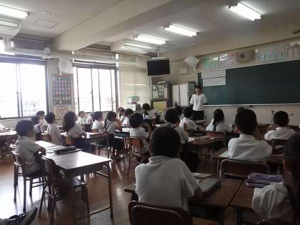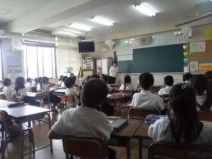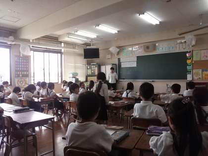 教員の授業力を一層高める為に研究授業を全教員が行っています。今日は2年2組で実施しました。子ども達は大勢の先生方が見ておられたので、いつも以上に張り切っていました。