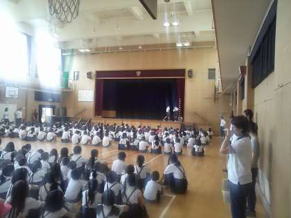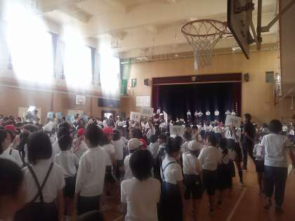 今年度5月より集会や朝会はお昼に行っています。検診等があり、久しぶりの集会。3択クイズで盛り上がりました!(^^)!