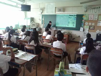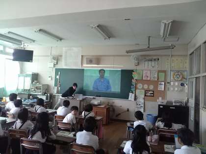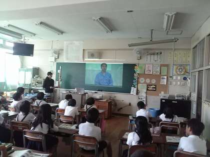 DVDを使って調べ学習、水道局で働く人々へのインタビュー場面。