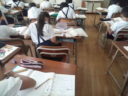 ものさしを使って10cmの直線を引いていました。算数の学習では、道具を使いこなすことも大切です。