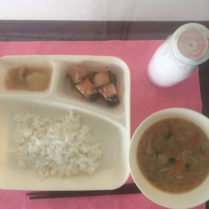今日は、ご飯、さけのさんしょう風味焼き、みそ汁、冬瓜の煮物でした。