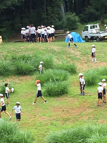 昼食後、宿舎前で遊びました