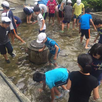 次は昨日できなかった魚掴み、なかなか難しいようです!