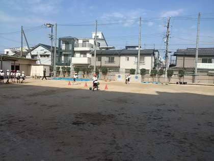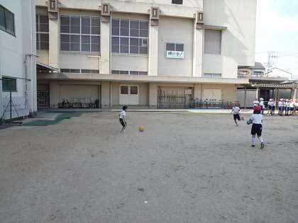 2組はボール運動、ボールを使ってのゲームに取り組んでいます。