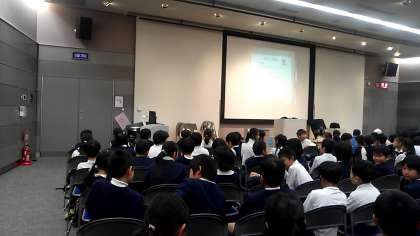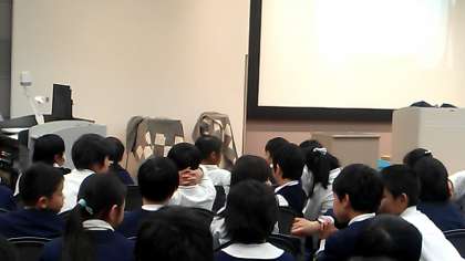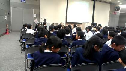 まずはホールの中で、昔の道具についてお話を聞きます。