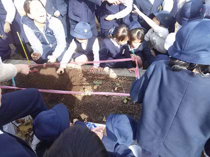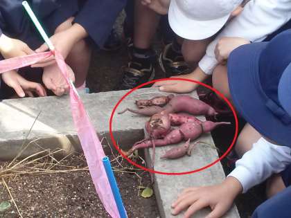 さつまいもの収穫です。今年は天候が不順だった為、取れたのはわずかこれだけ。子どもたちはがっかりしていましたが、植物を育てる難しさも実感できたようでした。