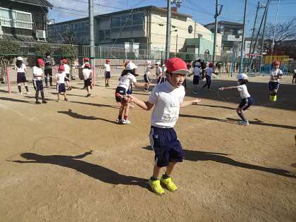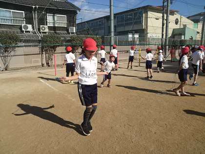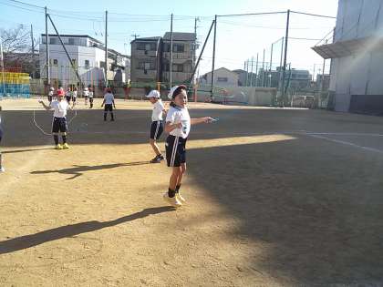 今シーズン一番の寒さの中、縄跳びに取り組んでいました。