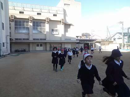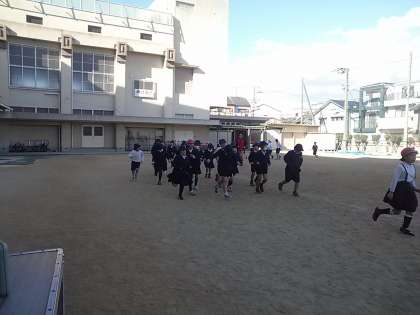 今日は3年生がグランドで駆け足です。ついつい、友達と競走になりがちですが、自分のペースで走ろうね。
