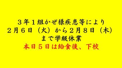 3年1組学級休業2月6日(火)から2月8日(木)まで学級休業