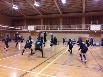 中学校体育館ではバレーの試合です。迫力満点でした。