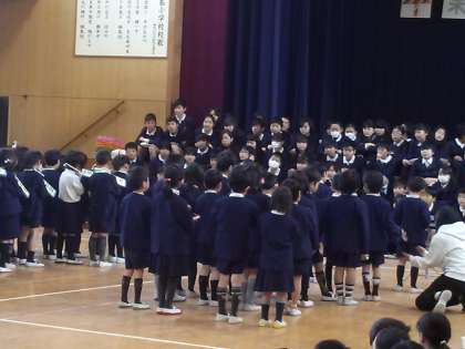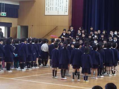 6年生に一番お世話になったのが1年生です。感謝の言葉と合奏をプレゼントしました。