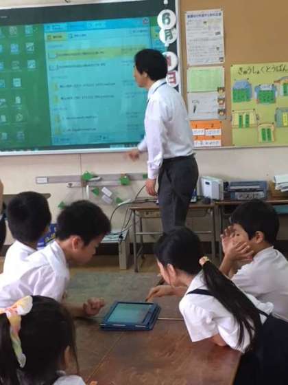 ICT支援員の先生から子どもたちに使い方を説明してもらい、早速使いこなしていました。子どもたちの習得時間の速いことに驚かされます。