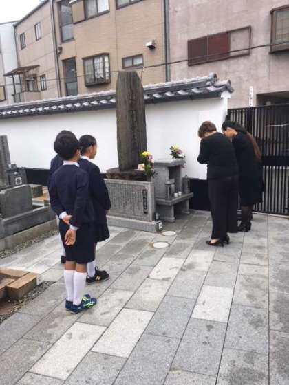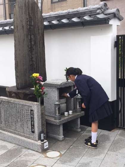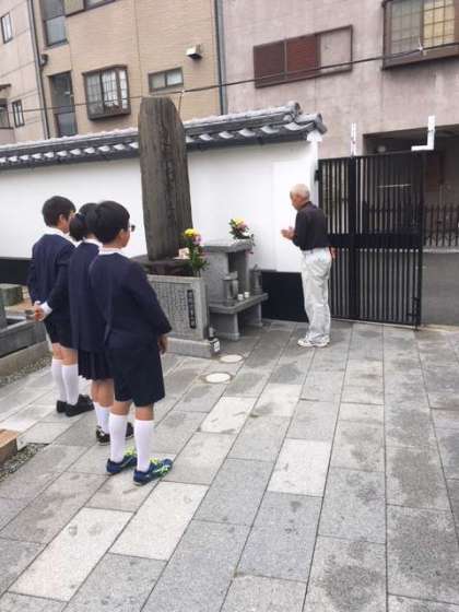 この悲しい記憶を忘れず、災害に備える気持ちも込めて、姫島小学校の近くにある大阪市立稗島霊園に「遭難児童の碑」祭られています。9月21日は、児童朝会で子どもたち全員にこのお話をし、児童代表と地域・PTAの方々と「遭難児童の碑」の前で慰霊を行いました。