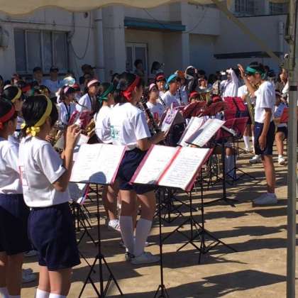 中学校は、吹奏楽部の生演奏での入場でとても気持ちのよい行進姿に、参観されている方から多くの拍手を受けていました。