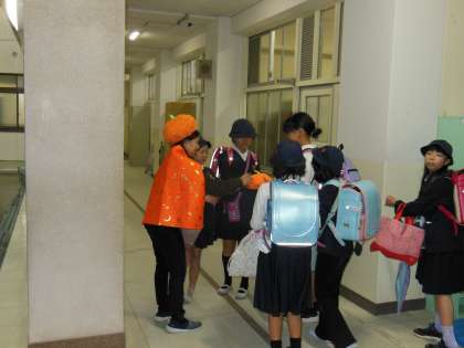 英語のネイティブスピーカーの先生がハロウィンの楽しい雰囲気を作ってくれました。