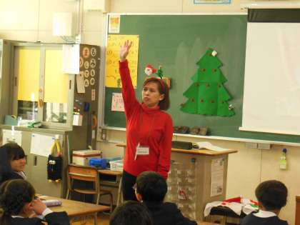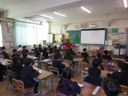 1年生の外国語活動の様子です。ネイティブの先生が楽しく盛り上げてくれました。