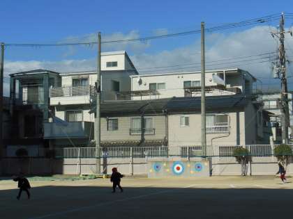 今日の昼休みにひめじま幼稚園の人たちが小学校の運動場でたこあげをしました。風が吹いていてよく飛んでいました。