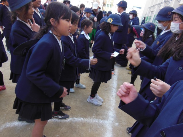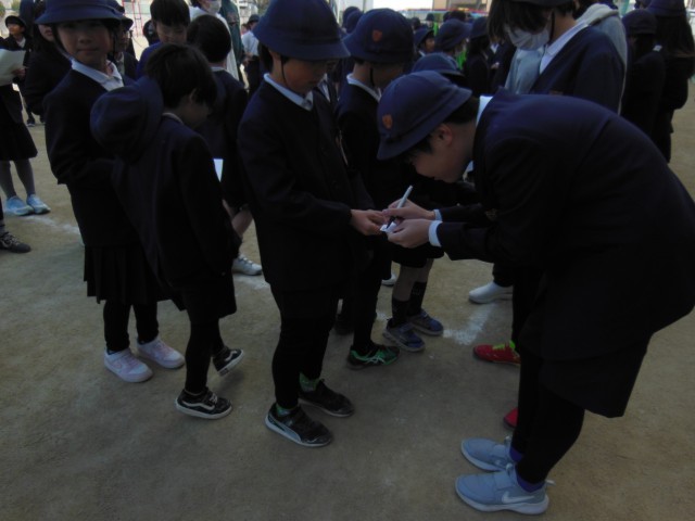 今日は今年度最後の児童集会でした。代表委員会の人のあいさつがありました。たてわり班でお世話になった6年生の人とじゃんけんをして6年生の人からサインをもらうというゲームをしました。違う班の6年生からもサインをもらいました。小さな画用紙に書いてもらいました。本のしおりなどにして大切にしてほしいです。