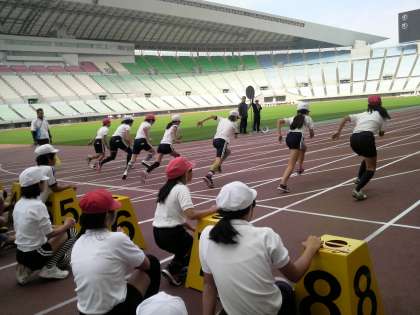 長居陸上競技場に、西淀川区・港区の11校が集まり、スポーツ交歓会を行いました。