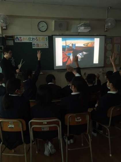 6年1組において、図画工作科の鑑賞領域の公開授業をしました。鑑賞した絵画は、ダリの「記憶の固執」です。