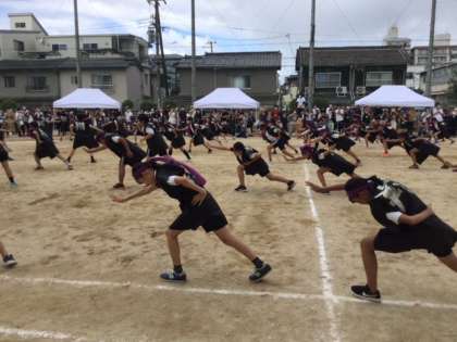 今日の写真は、1年生の体育の授業での「体力づくり」のようすです。