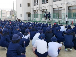 今日は西淀川署の警察官の方にご指導いただき、校内に不審者が侵入したことを想定した避難訓練をおこないました。警察官の方は迫真の演技をしてくださったので、訓練とはいえ、怖い思いをさせてしまった子どもたちもいるかもしれません。真剣に訓練をおこないました。
