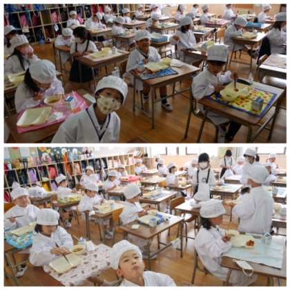 今日の給食は ビーフシチュー キュウリのサラダ あまなつかん かぼちゃパン 牛乳 の献立でした。ビーフシチューはルウから手づくりです。とても手間のかかった一品です。フレッシュのあまなつかんは大きく切られてたっぷりと食べ応えがあります。こういう皮の厚いかんきつは上手に食べるのが難しいです。みんな上手に食べられたかな。きっと1年生たちは食べるのに苦労したはず。でもそれも食育です。