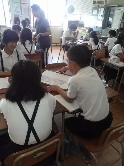 円の面積の公式をみんなで考えていました。切って並び替えてどんな形にしたら良いかな