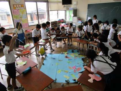 校長先生の話に続き、「夏休みの目標」の作文の発表をしました。