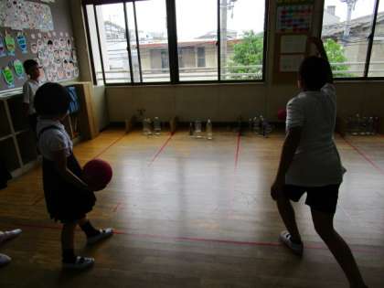 朝の会、ラジオ体操をしました。さすがにまだ、少し眠たそうです。
