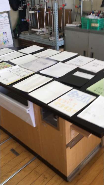 理科室で5・6年生の夏休みに取り組んだ自由研究を一斉に展示しました。