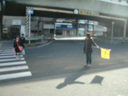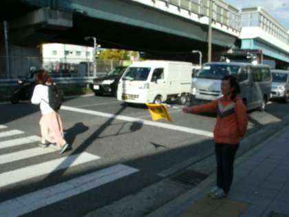 国道43号線、阪神電車踏切立哨。(4月9日(火))