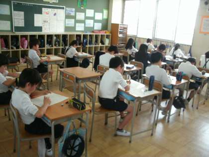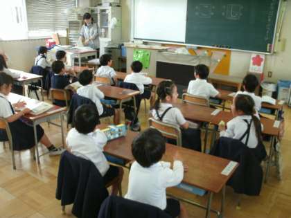 今日の授業の様子です。明日は授業参観があります。お家の方に一生懸命している姿を見てもらいましょう。1年生は給食参観です。参観後は各クラスの懇談があります。6年生は修学旅行説明会になっています。その後は、多目的室にてPTA決算役員指名総会が行われます。お家の方が参観や懇談に出ている間、図書室にて、更生保護女性会のみなさんが「子育て支援事業」をしてくださいます。