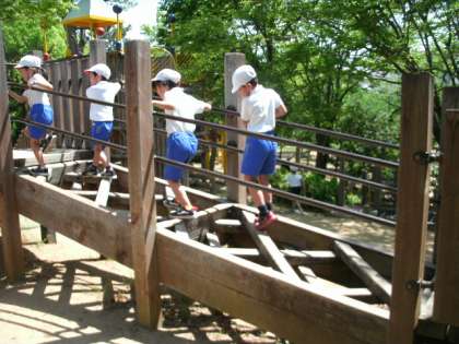 たくさんの遊具があり、どれで遊ぶかワクワクする子どもたちの前に、さらにサプライズが。姫島小学校と姫里小学校の1年生が偶然にも同じ場所へ遠足へ。幼稚園や保育園で仲の良かったお友達と嬉しい再開。一緒に遊んでいた子どももいました。