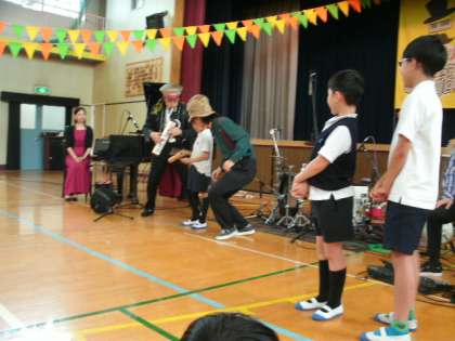 今日は2時間目にサウンドポケット様による「ピアニカの魔術師」の公演をしていただきました。音楽の授業が好きな子どもたちは興味津々。そして、いろんなテクニック、特にピアニカの演奏には圧倒されていました。体験ではたくさんの子どもたちが「やりたい!」「したい!」と手をあげ、サウンドポケット様の色んな曲、特に「USA」ではみんなノリノリでした。とても楽しい時間を過ごしました。サウンドポケット様も「こんなに盛り上がってくれて、こちらも嬉しかったです。」とおっしゃってくださいました。また機会があったら、よろしくお願いします。