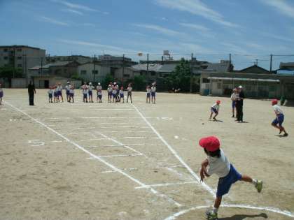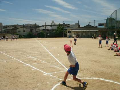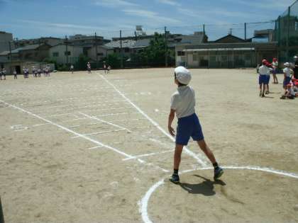 1年生は6年生に教えてもらって、順調に記録を取ることができました。いよいよ、6年生。パワフルです。1年生も「すごい」とびっくりしていました。記録は去年より伸びていましたか?
