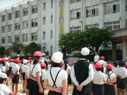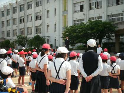 今日の児童集会は。大阪保健福祉専門学校からボランティアの学生さんが2名来てくれました。校長先生から紹介がありました。授業や休み時間一緒に過ごしてくださいます。お世話になります。(先週の方々と隔週で来られます)その後、みんなで「ふえおに」をしました。鬼が増えていきます。みんな一生懸命です。逃げてます。