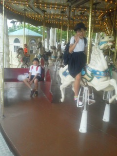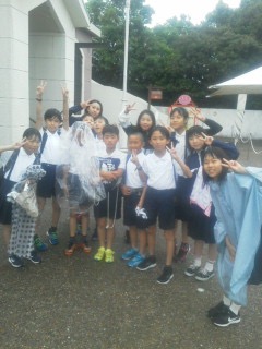 少し雨は降っていましたが、子どもたちは、お友達とご飯を食べて、限られた時間と場所で、スペイン村の活動を満喫しました。今は宿舎に向かっています。