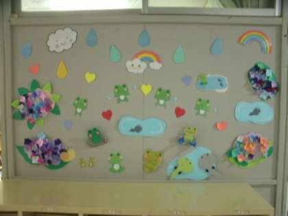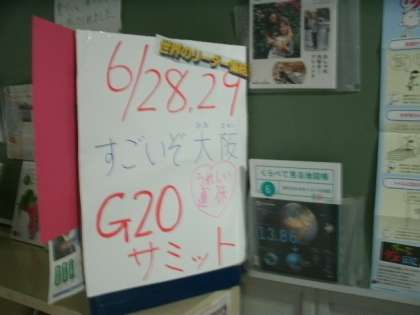 図書室支援員の先生、地域のボランティア「ハッピーブックちゃん」と児童で、図書室前のPOPを6月バージョンにしてくれました。「はっぴーブックちゃん」の皆さんはかわいらしい6月の仕様にしてくださいました。支援員の先生と児童は小学生新聞のバックナンバーを使って、G20の特集をつくってくれています。ぜひ、図書室へ足を運んでください。