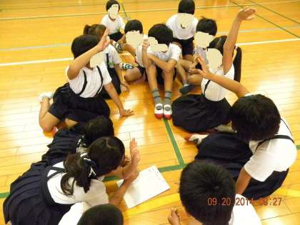 土曜授業がありました。はじめに縦割り班によるゲームを楽しみ、班の結束力を高めました。どの班もチームワークが良いです。
