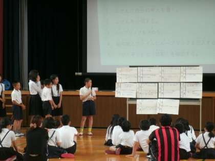 福小学校では、夏の集いというイベントを毎年7月に行っています。たてわり班のみんなで話し合って、「お店」(他の班の人たちにゲームなどで楽しんでもらう)を開きます。令和元年度は7月3日(水)を予定しています。そこに向けて、今日は話し合いを行いました。どんなお店を開くか、みんな真剣です。