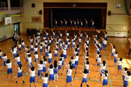 6月12日(水)の5時間目は講堂でプール開き集会と学校保健委員会の発表を行いました。いよいよ6月17日(月)からプールの授業が始まります。注意事項などは担任から話をしてもらいます。この日は体育委員会がお手本となって、準備運動の練習をしました。本校では音楽に合わせてダンスをするように準備運動を行います。プールサイドでは音楽が鳴ると、子どもたちは自然と準備運動を始めます。1年生は初めてなので、覚えてくださいね。