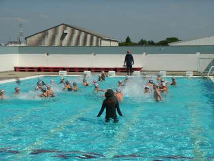 5、6年生の6時間目のプールの授業です。気持ちよさそうです。今日は、25mクロール、泳げる人は平泳ぎで、75m、合計すると100mは泳ぎました。