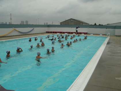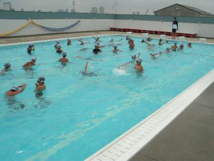 今日のプールの授業、中学年(3、4年生)です。けのびからクロール、できる人は平泳ぎで25mの練習です。