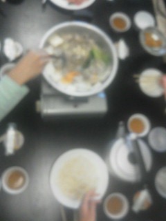 夕食です。鴨鍋です。おいしく、楽しくいただいています。食欲旺盛です。