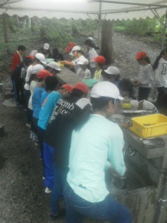 飯ごう炊さん終了です。とてもおいしかったです。後片付けもしっかりしています。