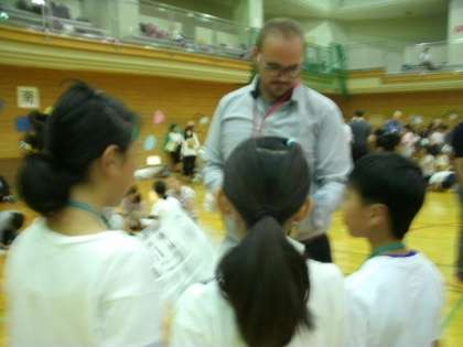 今日は、大阪市教育員会主催の「イングリッシュデイ」が城東スポーツセンターで開かれました。大阪市すべての学校で勤務しているC−NETが集まって、ゲームや文化を紹介し、普段勉強している英語を楽しむ機会でした。本校からは4名が参加しました。去年のC−NETとも会うことができました。楽しい時間を過ごすことができました。